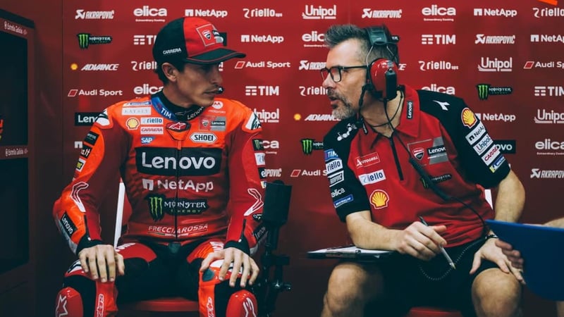 Forcada cree que, en esta nueva Ducati, sólo está cómodo Di Giannantonio y que Marc Márquez está sufriendo por las secuelas de su lesión. "A Marc no le hemos visto cómodo ni confiado en todo el año. Para mí es un tema de la lesión. Si te fijas en el lenguaje corporal incluso cuando camina se nota. Y si el líder no está al 100%, la fábrica pierde el norte", advierte el técnico, quien cree que hace unos años, el piloto de Cervera habría salvado la caída del viernes, que a la postre resultó clave en el último gran premio de Estados Unidos.