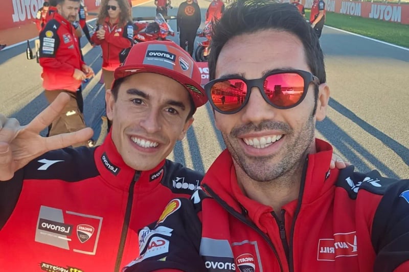 Michele Pirro, al contrario de Marc Márquez que no ha dado declaraciones sobre su vuelta, es el encargado de participar en los grandes premios cuando le invitan o de sustituto de los oficiales en Ducati. El probador de la escudería italiana ha hablado en gpone.com sobre todo lo que se viene en 2026 con el catalán: ''Marc está bien, se le ve con mucha confianza y sonriendo. Yo he entrenador con él estos días y, la verdad, está tan bien que yo solo puedo seguirlo en un par de vueltas, las que damos nada más salir de nuestro taller, después se me hace imposible seguir su ritmo''.