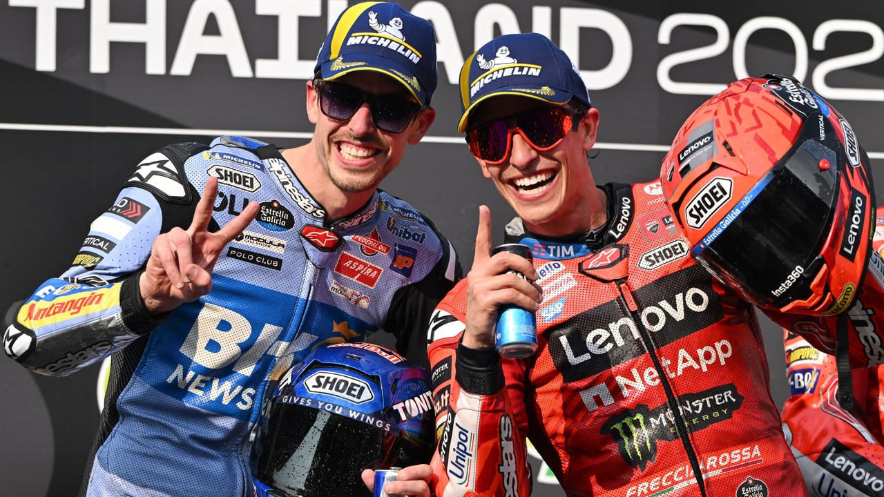 Que hay dos hermanos compitiendo en MotoGP es algo que puede parecer muy inusual, sin embargo, en los últimos años se ha convertido en algo relativamente común, pues hemos visto hasta a cuatro parejas; los Binder, los Espargaró, los Rossi -Marini en el caso de Luca- y los Márquez, pero ahora que solo quedan los últimos, lo han llevado un paso más allá logrando algo histórico y que jamás se había logrado, ser primero y segundo en una carrera. El Gran Premio de Tailandia ha sido el momento, pues la victoria de Marc ha estado acompañada del segundo puesto de Álex, repitiendo el resultado de la sprint.