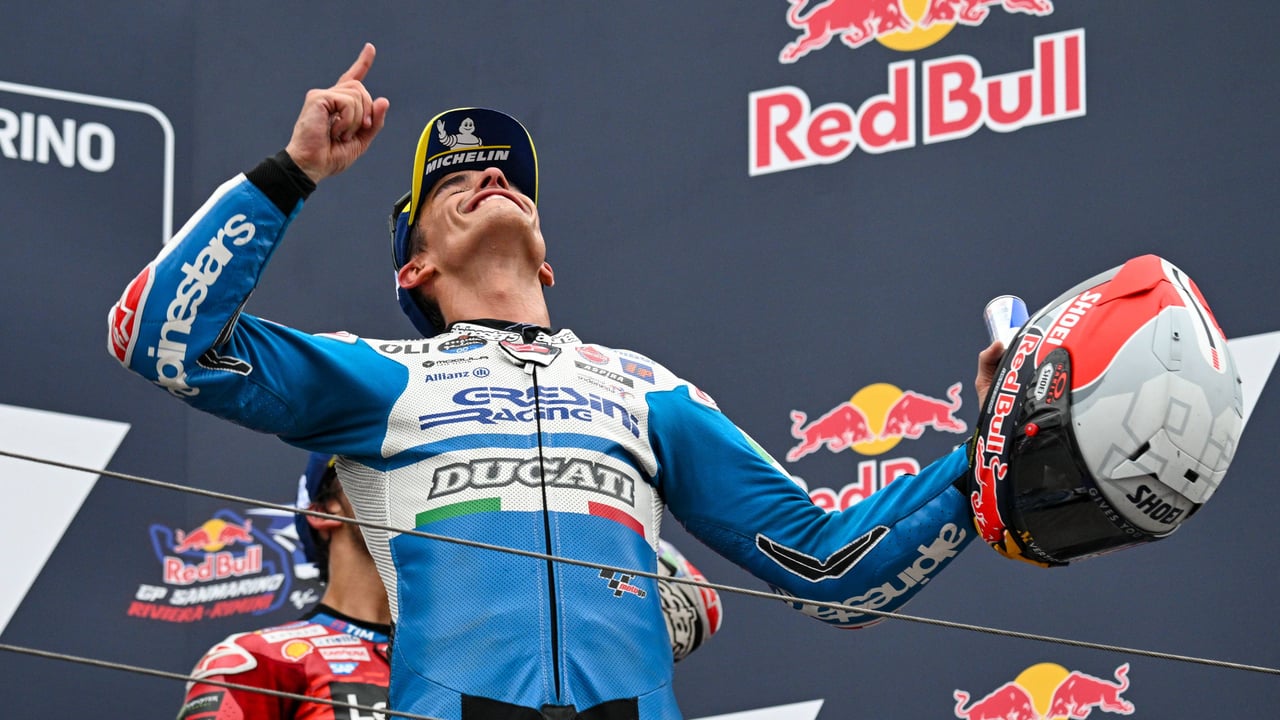 En el podio del GP de San Marino han sido dos italianos, que han aprovechado el apoyo local, los que han acompañado al español. Bagnaia y Bastianini han finalizado en la segunda y tercera posición respectivamente, pero Pecco se va contentísimo con esta segunda posición. Él mismo ha reconocido que no se enzarzó en una lucha por la victoria porque con ese resultado conseguía algo mejor, quedarse a tan sólo 7 puntos de la primera posición en la tabla, además de sobreponerse a sus problemas físicos.