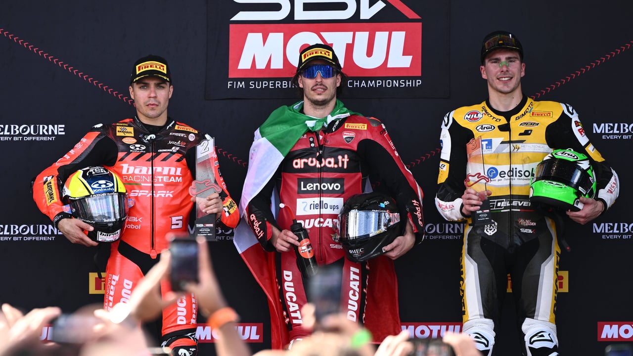 El podio de la carrera 1 del mundial de Superbikes 2026 en Phillip IslandImago