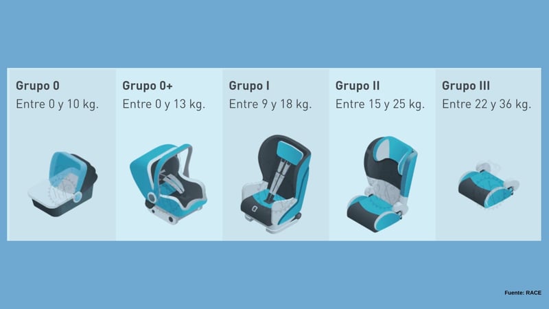 - Grupo 3: para niños de entre 22 y 36 kg.