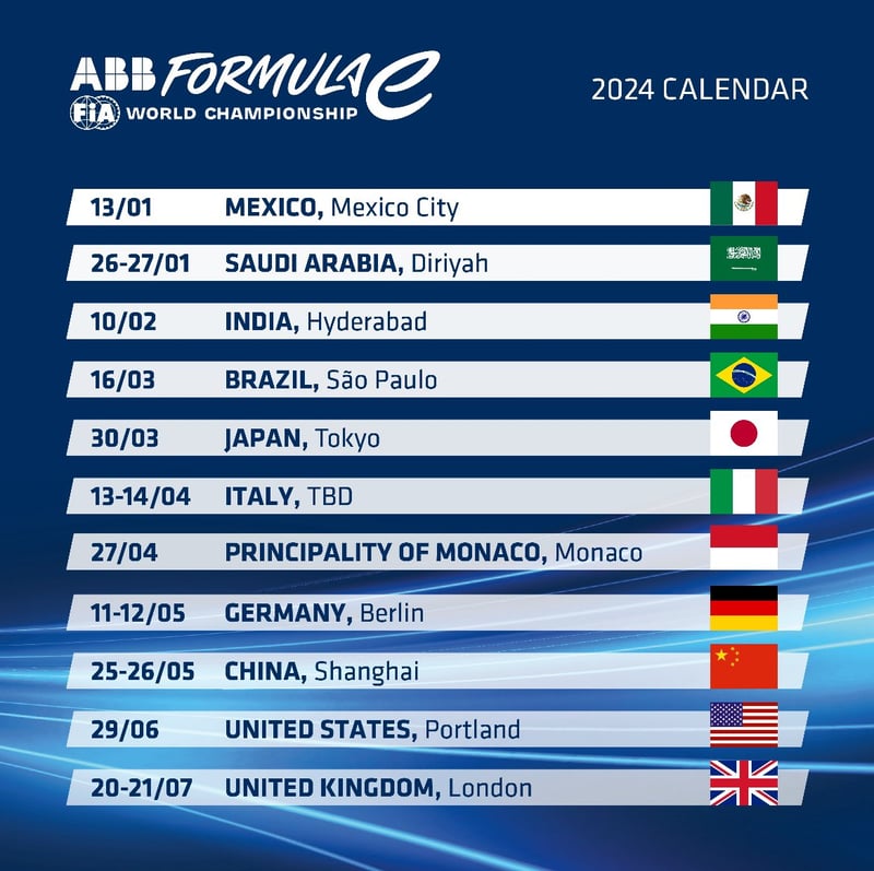 Este jueves se ha conocido el calendario para 2024 de Fórmula E. El próximo año, el campeonato tendrá un total de 16 rondas que se disputarán de enero a junio. Y lo hace con malas noticias para España, porque finalmente Málaga no acogerá una de las carreras, tal y como se venía negociando desde este pasado verano. La categoría eléctrica comenzará en México y terminará en Estados Unidos.