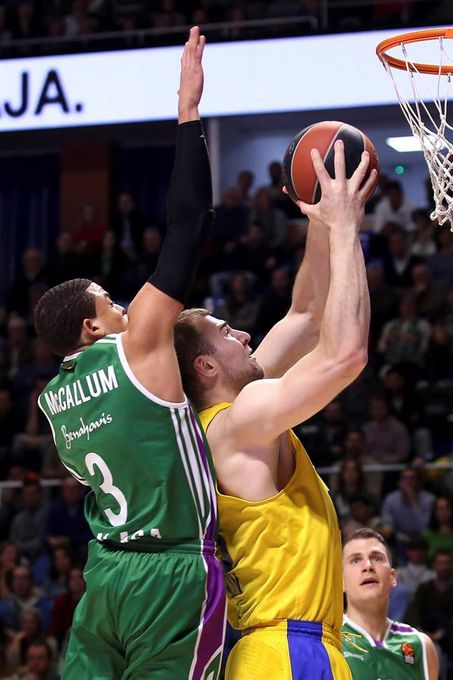 Los andaluces llegaron a falta de un minuto para el descanso con una desventaja de cinco puntos, 36-41, pero la velocidad del base estadounidense Ray McCallum, el más destacado con ocho puntos, y un parcial de 6-0, le otorgaron una ventaja mínima antes de irse a vestuarios (42-41, min 20).