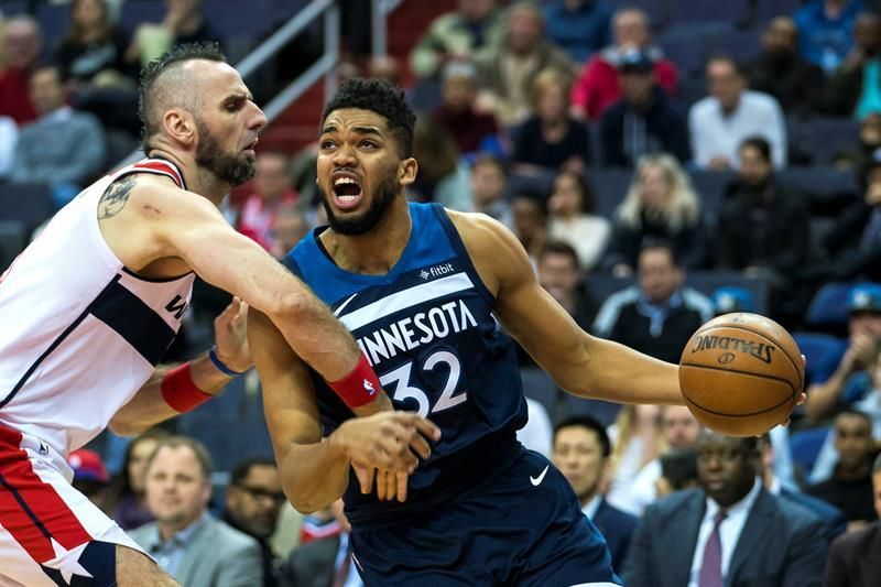 Towns aportó doble-doble luego de haber recibido un golpe en el mentón y dirigió la victoria de visitantes de los Timberwolves de Minnesota por 111-116 sobre los Wizards de Washington.