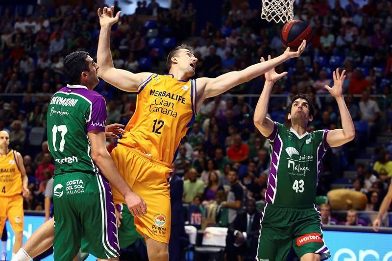 Los fallos en ataque del Herbalife y la buena dinámica de cara al aro del Unicaja, dio como resultado una diferencia de 14 puntos para el cuadro cajista, que fue de menos a más ante un Gran Canaria más debilitado cuando se llegó al descanso (49-35).