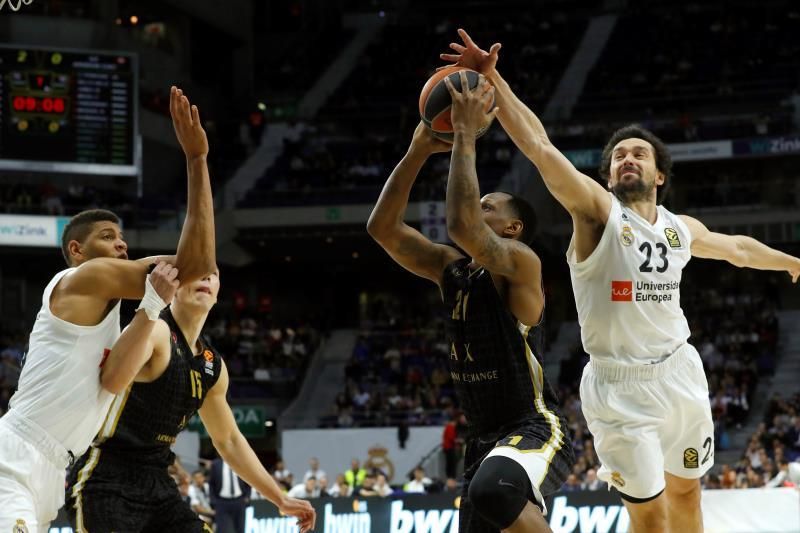 El Real Madrid consiguió una trabajada victoria (92-89) ante el AX Milán, tras ir perdiendo por 18 puntos en el primer minuto del segundo cuarto (19-37), recuperarse y sacar la casta y calidad del vigente campeón, sobreviviendo a Mike James autor de 35 puntos para los italianos.