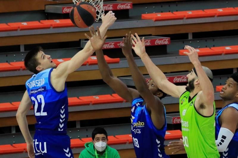 Miquel Salvó trató de tirar de los suyos, pero encontró una torre en el pívot estadounidense Josh Sharma. La defensa local siguió apretada y tensa, pero esta vez sí encontró una vía para el ataque: los tiros libres obtenidos por Leo Meindl, y los triples de Marc y Novak (70-60, min. 36).