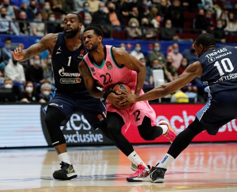 Una jugada demostró la superioridad manifiesta del Zenit. Falló el triple Baron, cogió el rebote el equipo local y Pangos no falló desde la línea de tres puntos (53-36).