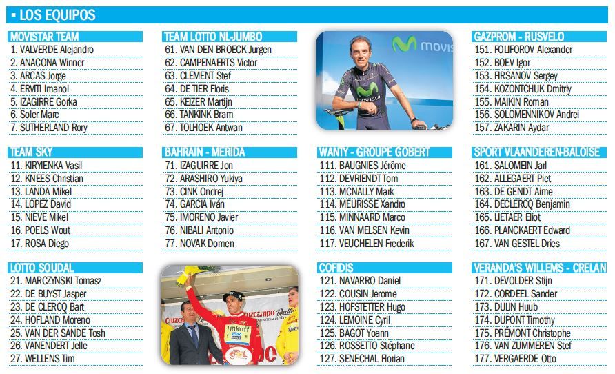 La Vuelta no tendrá ningún respiro. Así, desde el primer momento el recorrido marcará una ruta exigente para los integrantes del pelotón. Camino de Granada, el puerto de Zafaraya, de primera categoría, dará la bienvenida a los ciclistas, para, después de tres pasajes de montaña de menor nivel, llegar a la cumbre del Monachil (Primera) a veinte kilómetros de meta. La primera etapa es solo un ejemplo del perfil de una carrera donde la montaña, como viene siendo habitual en los últimos años, será protagonista. De esta manera, después de 180 km, la prueba reina desembocará en la Peña del Águila de la localidad jiennense de Mancha Real, a 1.300 metros de altitud, tras atravesar, como en el día anterior, hasta tres puertos de montaña. Una gran oportunidad para que los favoritos al triunfo final, Contador, Valverde o Pinot, hagan gala de su candidatura al título. En la jornada siguiente los focos se centrarán en los especialistas contra el crono. Lucena acogerá una contrarreloj corta, solo doce km, pero realmente dura. Quizá, la etapa que finaliza en Sevilla, a pesar de que recorre parte de la Sierra Norte de la provincia hispalense, es la más relajada. Si todo transcurre con normalidad, es una prueba propicia para los sprinters.