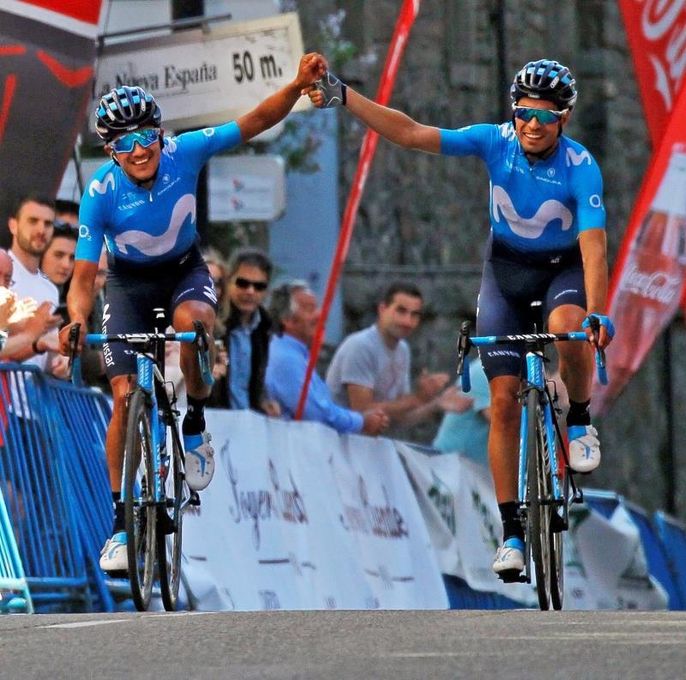 Los cuatro fugados llegaron al Alto de la Espina, de segunda categoría, con unos 3 minutos y medio de ventaja sobre el pelotón en el que el equipo Movistar Team asumía con tranquilidad la responsabilidad de ser considerado favorito.