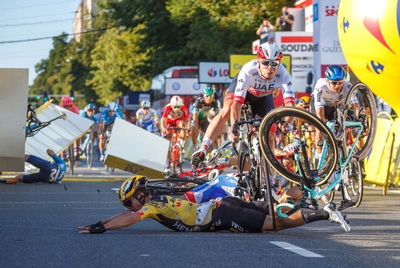 El ciclista del Deceunick-Quick Step chocó contra las vallas cuando buscaba un hueco en el sprint por la parte derecha de la carretera y fue cerrado por Groenewegen, que ganó el sprint pero fue descalificado por la organización de la Vuelta a Polonia, que decidió declarar a Jacobsen ganador de la etapa.