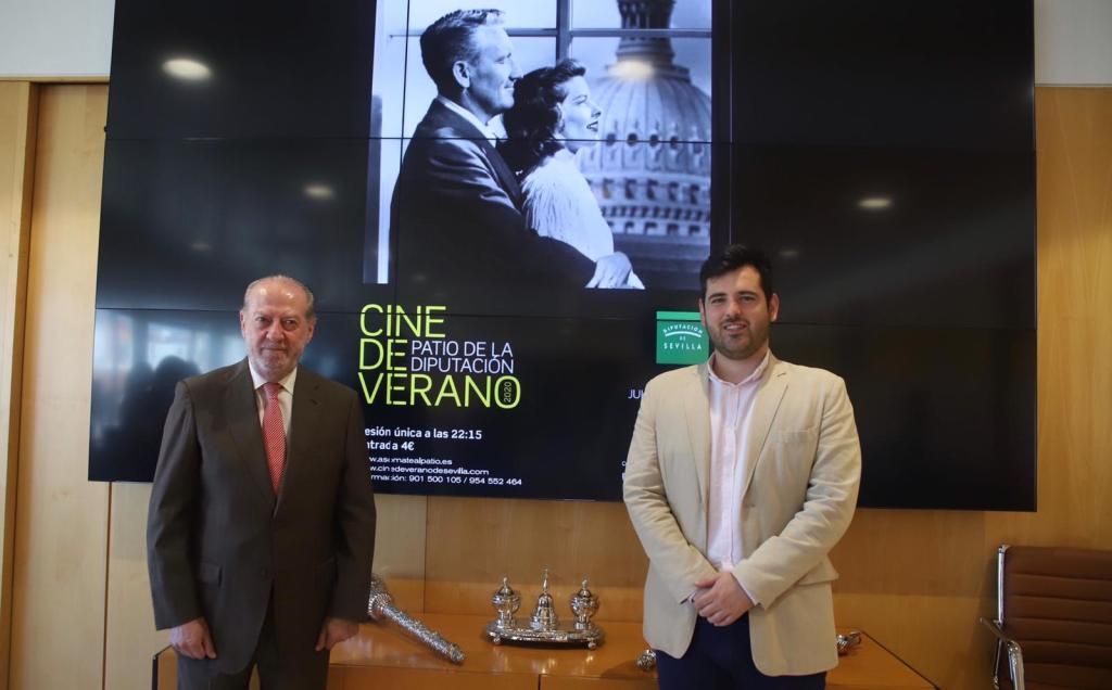 Este jueves ha tenido lugar en la sede de la Diputación de Sevilla la presentación de la programación de la temporada 2020 del Cine de Verano Patio de la Diputación. Fernando Rodríguez Villalobos, presidente del organismo, ha ejercido de maestro de ceremonias ofreciendo toda la información sobre el protocolo bajo el que se va a desarrollar la actividad, como consecuencia de la COVID-19.