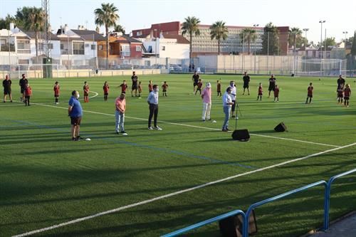 En un sencillo acto, "marcado por el uso de mascarillas, el distanciamiento social y el control del aforo", el primer edil, flanqueado por el responsable del Patronato, los presidentes del Esfubasa, Antonio Vargas; San José, José Luis Casado; Rinconada, Manuel Díaz, y La Estación Rugby, Elio Centeno, comenzó aludiendo a la situación de "nueva normalidad" como consecuencia de la pandemia de la Covid-19.