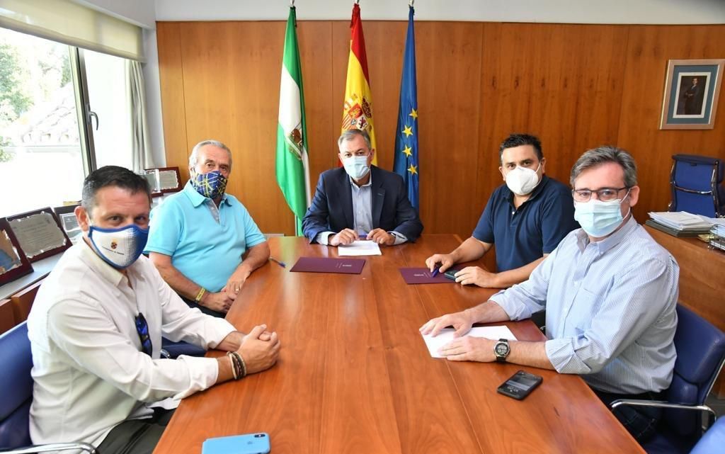 El alcalde de Tomares, José Luis Sanz, ha firmado un protocolo de actuación anti-Covid con los presidentes de los equipos locales de fútbol, Javier Falcón, de la UD Tomares, y José Moreno, del Camino Viejo CF, con el objetivo de evitar contagios por el coronavirus e incrementar la protección y seguridad de los jugadores de los equipos y escuelas deportivas de ambos clubes en los entrenamientos de cara al inminente inicio de la nueva temporada 20/21.