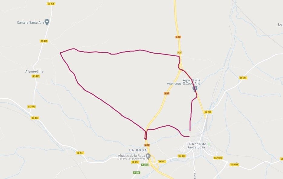 El recorrido de este sendero circular, que se inicia y concluye en La Roda de Andalucía, discurre paisajísticamente en una zona de contacto entre los llanos de Antequera y la sierra de Estepa.