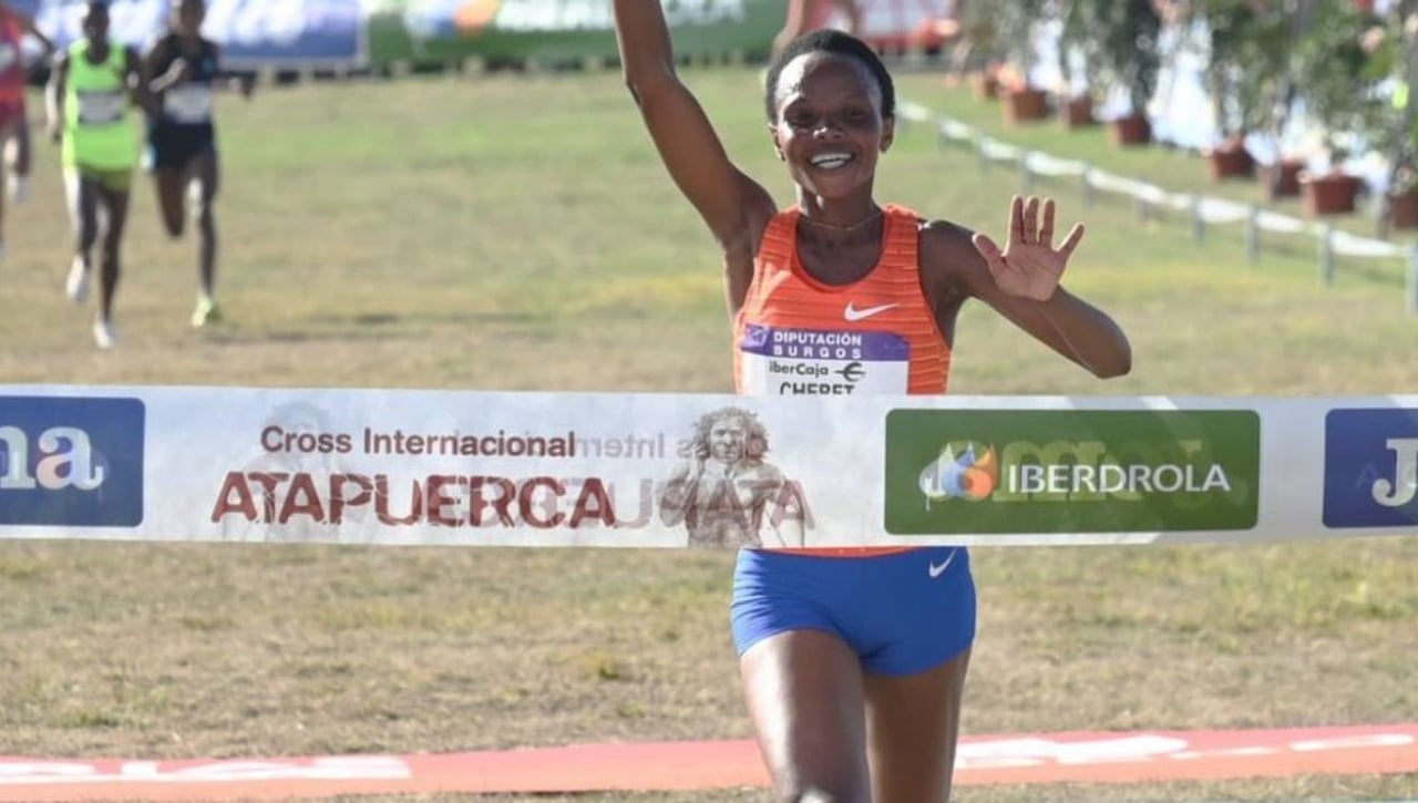 La fondista keniana venció en su primera prueba de Cross Country de 2022 en Burgos a siete días de la prueba en Santiponce llegando como tercera en el mundial