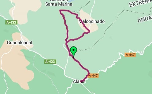 Una vez allí, se continúa nuevamente hasta la finca "La Urbana" tomando el mismo camino hacia el casco urbano, pero esta vez en sentido contrario para volver a la localidad de Alanís y poner fin así a una travesía que se extiende por casi 35 kilómetros de largo.