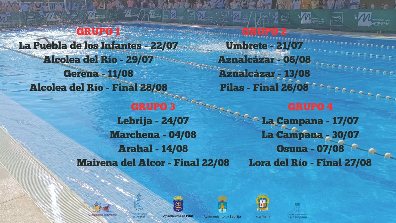 El calendario del Circuito provincial de Natación de Verano 2025.Diputación de Sevilla