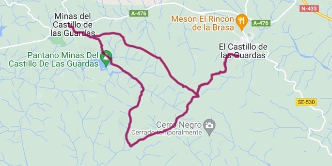 En este sendero circular de El Castillo de las Guardas, partiremos desde la “Fuente –Abrevadero”, antiguo lugar de reunión entre la gente del lugar, y subiremos el Cerro de las Ánimas en dirección al camino de Cañada Alta. Tras pasar junto al radar meteorológico nos dirigiremos al poblado de Minas del Castillo (Antiguo poblado minero). Volviendo un trecho sobre nuestros pasos y continuando el sendero, visitaremos la antigua estación de ferrocarril de la “Mina Admirable”. Marcharemos junto a la cola del pantano y nos adentraremos en la Sierra del Pantano para acercarnos al desvío de la aldea de El Pedrosillo, hoy en día semi-habitada. Ya de vuelta, pasaremos junto al Cortijo de Caña Alta para volver a bajar entre paredes de piedra seca de vuelta a El Castillo de las Guardas.