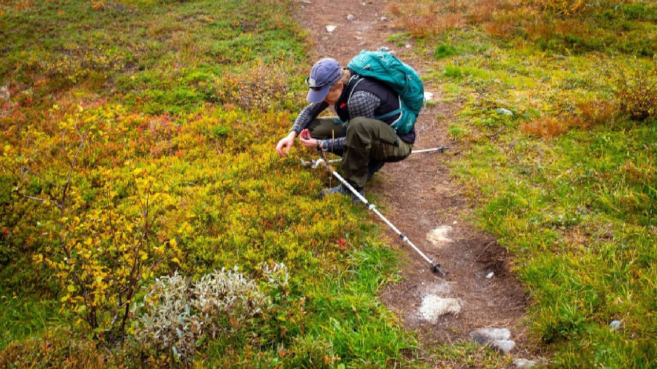 Senderista recogiendo frutos en plena rutaCordon Press