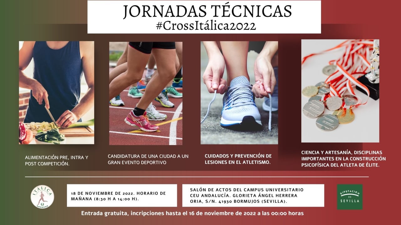 Dos días antes de la celebración del Cross Internacional de Itálica se llevarán a cabo las Jornadas Técnicas que se enmarcan dentro de las actividades anexas a la celebración del XL Internacional de Itálica. Las jornadas se llevarán a cabo el día 18 de noviembre desde las 8:30 horas hasta las 14 horas en el Salón de Actos del Campus Universitario CEU Andalucía (Glorieta Ángel Herrera Oria, s/n. Bormujos), siendo completamente gratuitas.