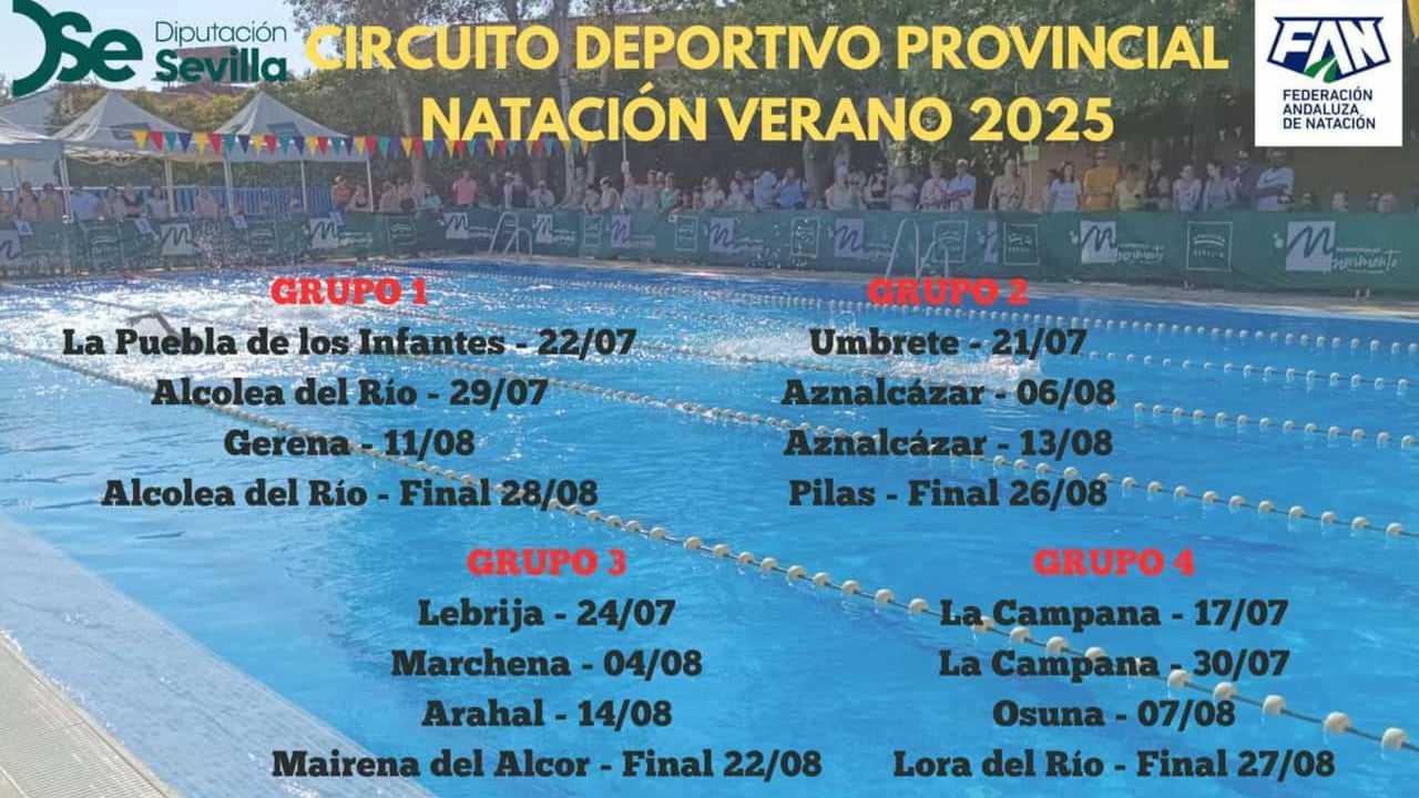 El calendario del Circuito provincial de Natación de Verano 2025.Diputación de Sevilla
