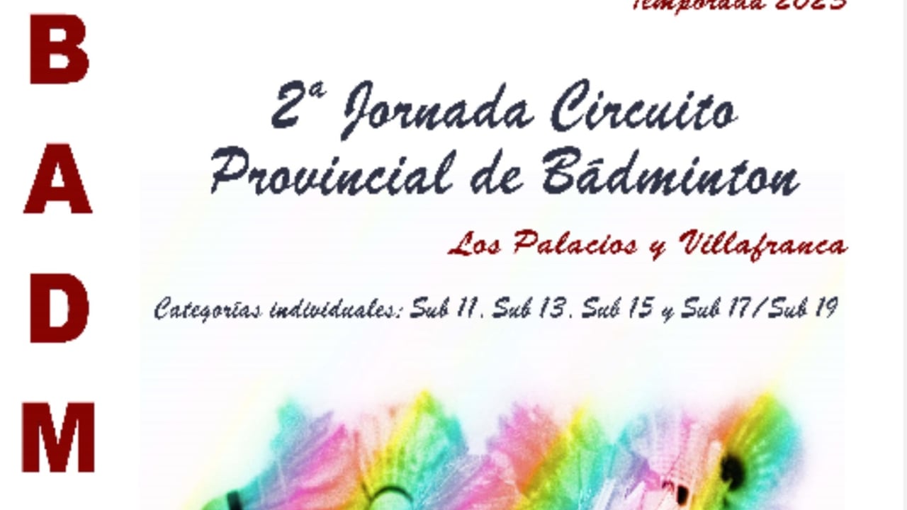El 18 de febrero comienza la segunda jornada del Circuito Provincial de Bádminton 2023 de la Diputación de Sevilla, organizado por el Servicio Técnico de Deportes del Área de Cultura y Ciudadanía, con la colaboración de la Federación Andaluza de Bádminton y los ayuntamientos de la provincia. Este Circuito de carácter promocional e interés en el fomento de la participación en categorías base tendrá lugar en el municipio sevillano de Los Palacios y Villafranca, concretamente en el Pabellón Municipal José Moral Ayala ubicado en la Avenida Horcajo 2.
