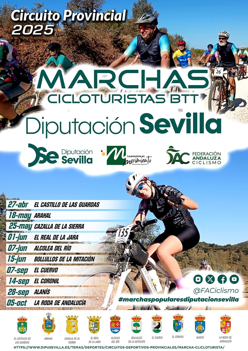 Los pasos para conseguirlo son bien sencillos. En primer lugar, cada participante debe conocer las fechas y las sedes de cada una de las diez pruebas. En este caso, el Circuito provincial de Marchas Cicloturistas avanza hacia su 7ª Jornada del campeonato que se disputará en El Cuervo. De cualquier modo, el calendario se publica cada temporada en la web de la Diputación de Sevilla y en los canales oficiales de las federaciones colaboradoras.