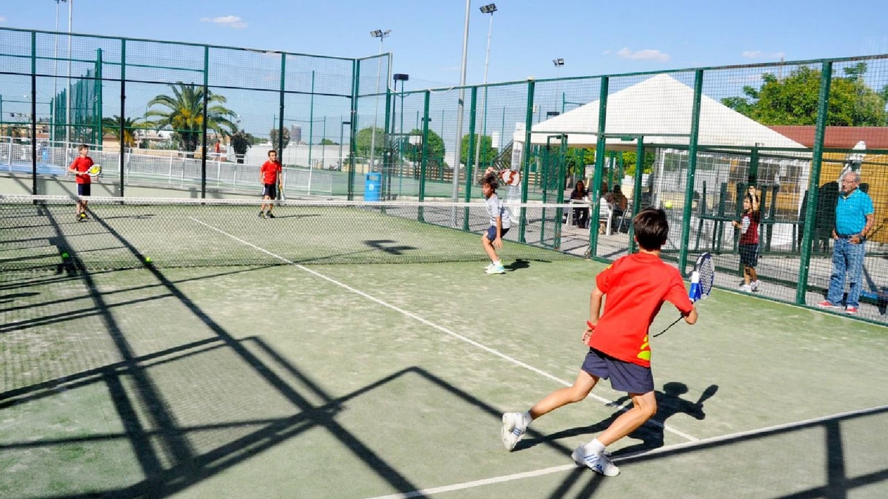 Niños disputando un partido de pádelAyuntamiento de Tomares