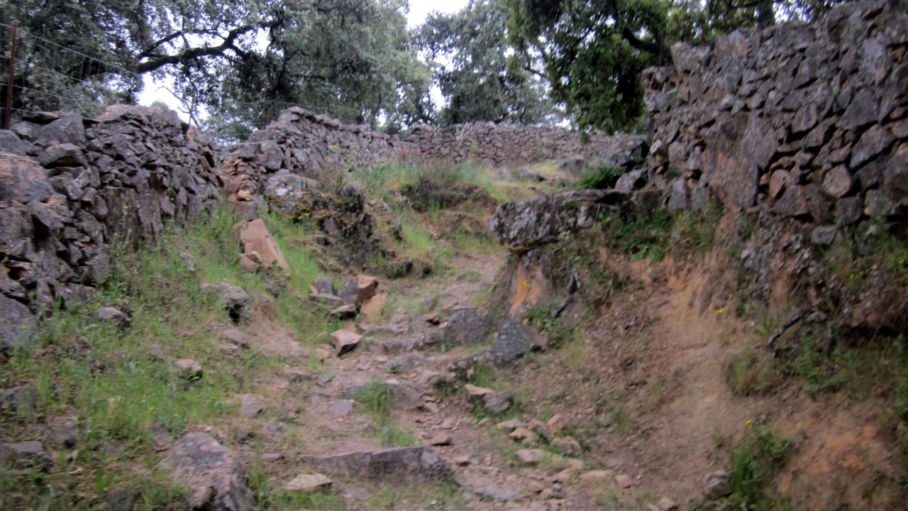 Una pista bien de finida llega hasta la aldea “El Pedrosillo” donde habrá que andar por algunos metros de carretera para desviarnos a la derecha por una pista dentro de monte público “Cerro Negro” SE-11040-JA. Esta pista acaba en la carretera SE-539, con poco tránsito de vehículos, que habrá que recorrer unos 1400 metros hasta un desvío a la derecha que nos llevará por el tramo final del sendero a lo largo de un estrecho pasillo limitado por muros tradicionales de piedra seca.