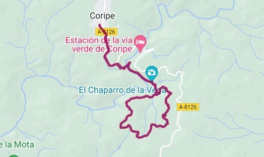 La Ruta Circular de San Pedro es un recorrido de algo más de 11 kilómetros. Se sale de la localidad de Coripe por un sendero que transcurre paralelo al Arroyo del Huerto. Posteriormente, se adentra en el entorno natural hasta llegar al monumento natural de El Chaparro de la Vega que es una espectacular encina de más de 200 años de antigüedad, que alcanza unos 13 metros de altura y que tiene un diámetro de copa de unos 30 metros. Frente a él se puede ver la Ermita de Nuestra Señora de Fátima, ubicada en un paraje de singular belleza donde se hace indispensable una parada.
