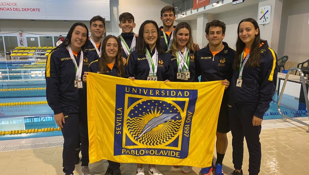 La Universidad Pablo de Olavide ha participado este fin de semana en las pruebas de natación y natación adaptada de los Campeonatos de Andalucía Universitarios (CAU) 2023, evento organizado por la Universidad de Granada y en el que la UPO ha conseguido un meritorio cuarto puesto en el ranking general tras alzar 12 medallas: 4 de oro, 4 de plata y 4 de bronce.