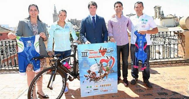 Ayer se presentó en el Edificio Laredo esta dura prueba bajo la modalidad de medio Ironman que se celebrará el próximo sábado. Los participantes tendrán que recorrer 1,9 kilómetros nadando en el río Guadalquivir, pedalear durante 90 kilómetros por los municipios de La Algaba, La Rinconada, Salteras, Olivares, Gerena y Guillena; y correr finalmente 21 kilómetros (media maratón) por la orilla del Río Guadalquivir para acabar en el Parque del Alamillo.