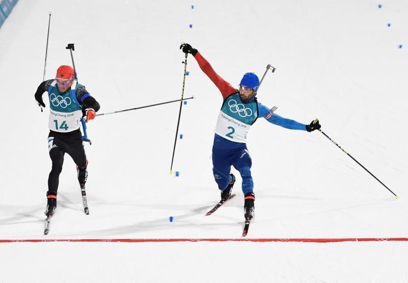 La revisión de la foto de llegada concedió al biatleta galo el triunfo en la prueba de 15 kilómetros con salida en masa, toda vez que Simon Schempp alcanzó la meta junto a él.