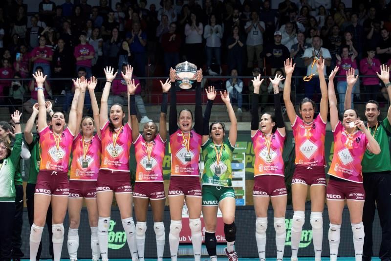 Daniella Da Silva, que firmó 20 puntos, fue elegida mejor jugadora de la final de la Copa de la Reina y, como capitana de su equipo, recibió el trofeo de manos del presidente de la Federación Española de Voleibol, Agustín Martín.