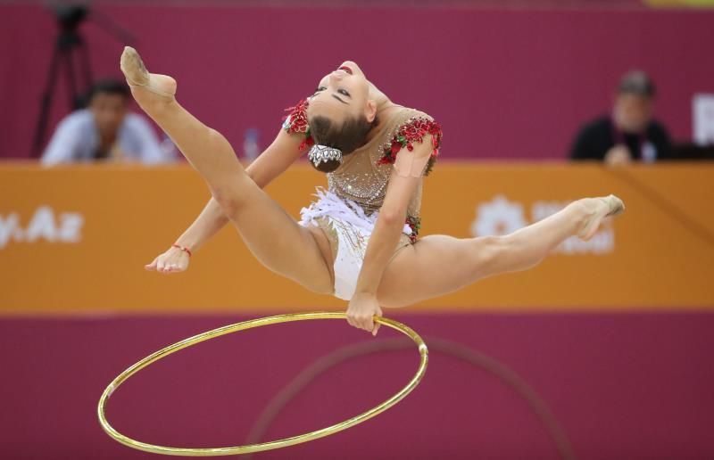 En aro obtuvo Dina una nota de 28,350 que le permitió superar a Ashram (27,850) y a otra bielorrusa, Anastasiia Salos (27,650).