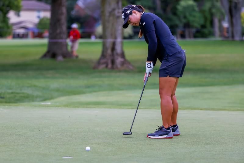 Un día después de hacer seis birdies seguidos en una apertura de 10 bajo 61, la joven golfista japonesa de 22 años tuvo cuatro seguidos en los números 14 al 17 que le salvaron el día después que antes había cometido cuatro bogeys.