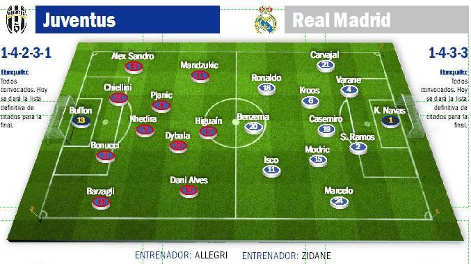 En lo deportivo, la única duda en el Madrid está en si jugará Bale en su casa o será Isco, aunque el malagueño parte con ventaja. La principal de Allegri tiene que ver con la posición de Dani Alves, de la que dependerá la titularidad de Cuadrado.