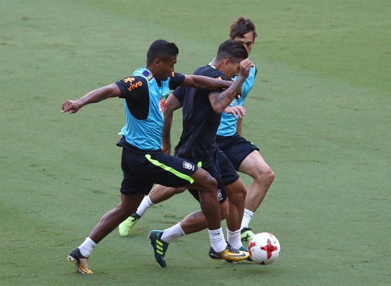 En el último entrenamiento antes del viaje, Gabriel Jesús, del Manchester City, alineó entre los suplentes, en tanto que Firmino, jugador del Liverpool, se situó en punta junto a Neymar, aunque este último tuvo un mayor despliegue y participó también en la creación.