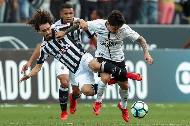 El Corinthians, ya campeón, se despidió de su afición con un empate a dos en casa ante el Atlético Mineiro, que mantiene una remota esperanza de entrar en la Libertadores en la última jornada.