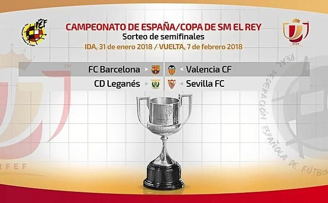 LaLiga ha dado a conocer los horarios de las eliminatorias correspondientes a las semifinales de la Copa de Su Majestad el Rey, las cuales han deparado un FC Barcelona-Valencia CF y un CD Leganés-Sevilla FC.