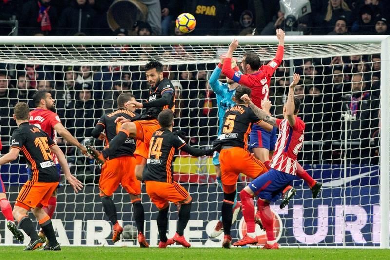 El central uruguayo del Atlético de Madrid Diego Godín, se ha retirado lesionado en el minuto 49 del partido contra el Valencia y ha sido sustituido por Juanfran Torres, segundo lesionado del conjunto rojiblanco tras el montenegrino Stefan Savic.