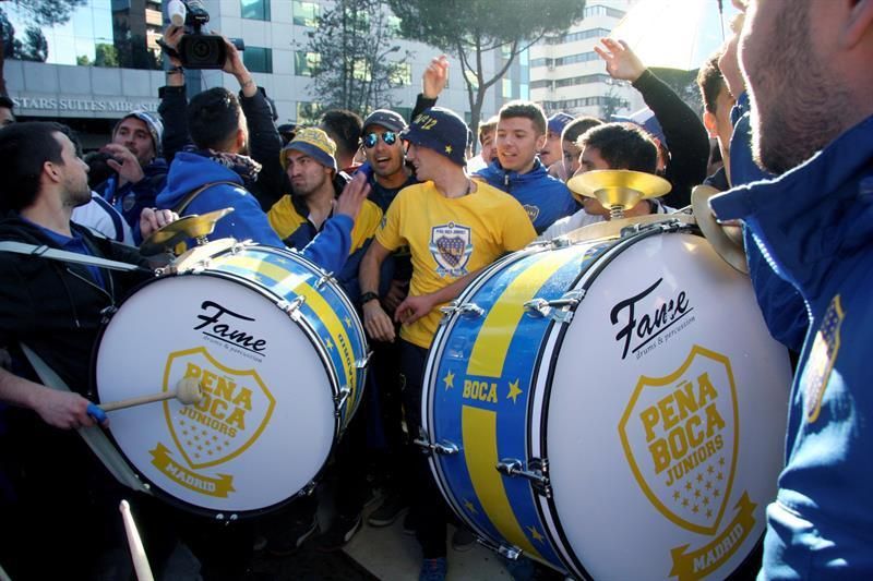 Madrid, 8 dic (EFE).- Cientos de aficionados del Boca Juniors se reunieron a las puertas del hotel Eurostars Suites Mirasierra, lugar de estancia de su equipo en Madrid con miras a la final de la Copa Libertadores ante el River Plate, para celebrar el tradicional 'banderazo'.