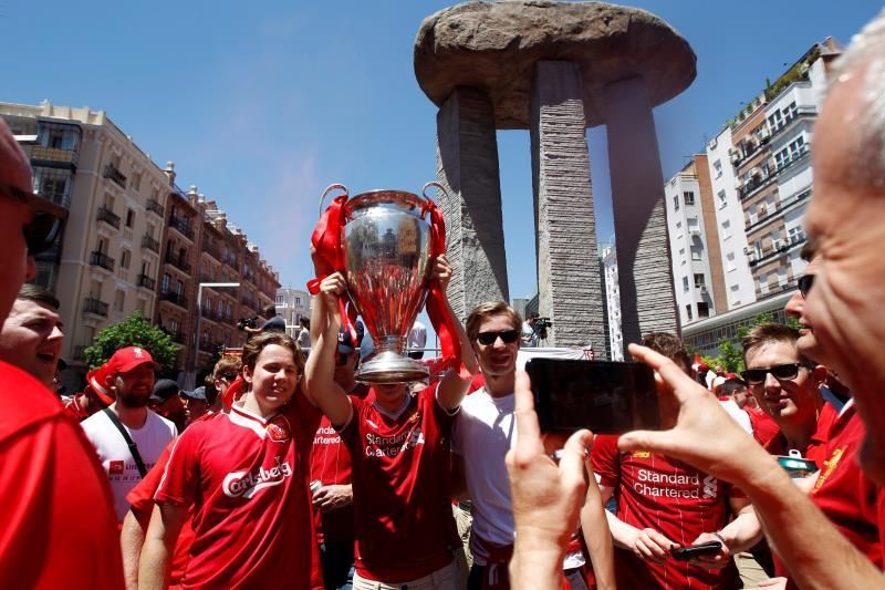 Desde este mediodía se agolpan en la avenida de Felipe II, frente al Palacio de los Deportes, miles de hinchas del Liverpool en torno a un escenario en el que se jaleaba al técnico alemán Jürgen Klopp, artífice de un conjunto que cayó en la final el curso pasado ante el Real Madrid y ha sido capaz de levantarse para retornar a ella esta temporada.