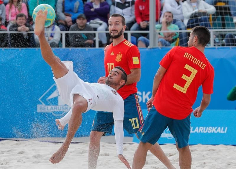 La selección española de fútbol playa, que llegó a dominar por 2-0 en el primer parcial, perdió de forma contundente ante Portugal (3-8) en la final de los Juegos Europeos de Minsk 2019.