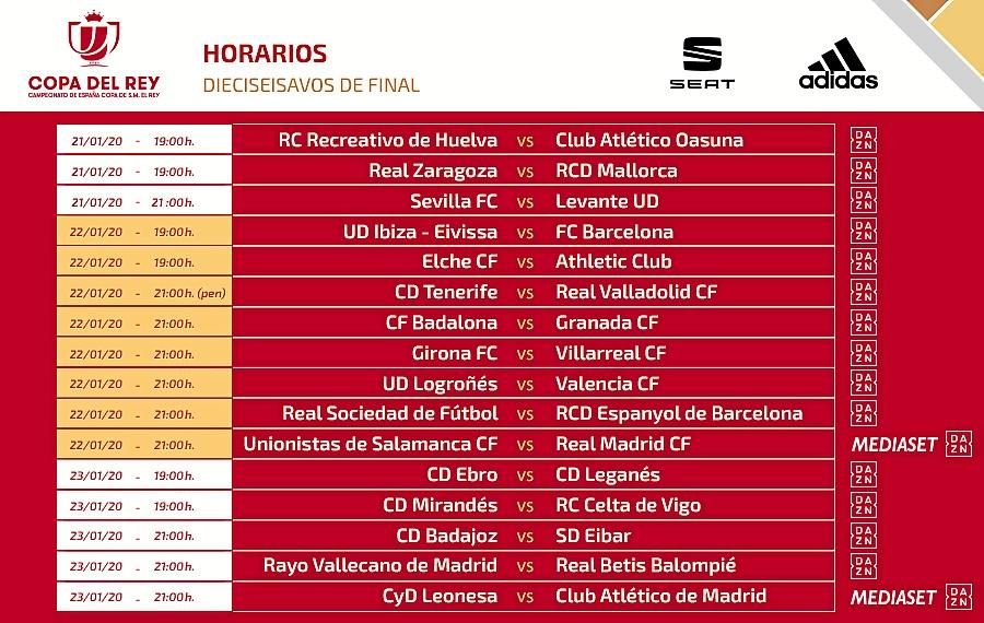 --HORARIOS DE LOS DIECISEISAVOS DE FINAL DE LA COPA DEL REY.