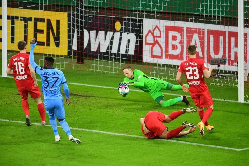 El Leipzig, con la aportación de Angeliño y Dani Olmo goleó al Bochum, de segunda (4-0), y el Wolfsburgo, que venció al Schalke (1-0), alcanzaron los cuartos de final de la Copa de Alemania.