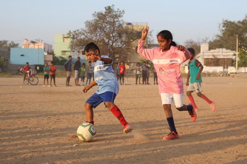 A pesar de la pandemia, 330 niños y niñas de las comunidades más desfavorecidas del distrito de Anantapur siguen disfrutando y aprendiendo a través del fútbol, gracias al acuerdo de colaboración que desde hace un lustro mantienen la Fundación Vicente Ferrer, LaLiga y su fundación para apoyar el programa de deportes que desarrolla la Anantapur Sports Academy (ASA).