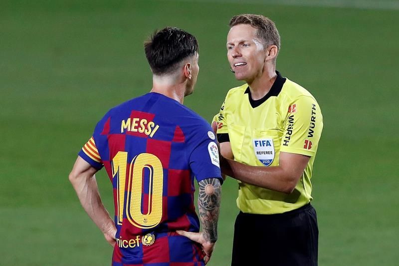 Hernández Hernández, Gil Manzano, Mateu Lahoz, Del Cerro Grande... Son estrellas ya mediáticas que se mezclan en apariciones al lado de las grandes estrellas. Messi, Benzema y Luis Suárez, dialogan con ellos. En el cépsed y en el túnel de acceso al campo. En España, Macron y Würth son los dos grandes compañeros de viaje del segmento arbitral. Y su vestimenta atrae ya un emplazamiento interesante para insertar logos globales.